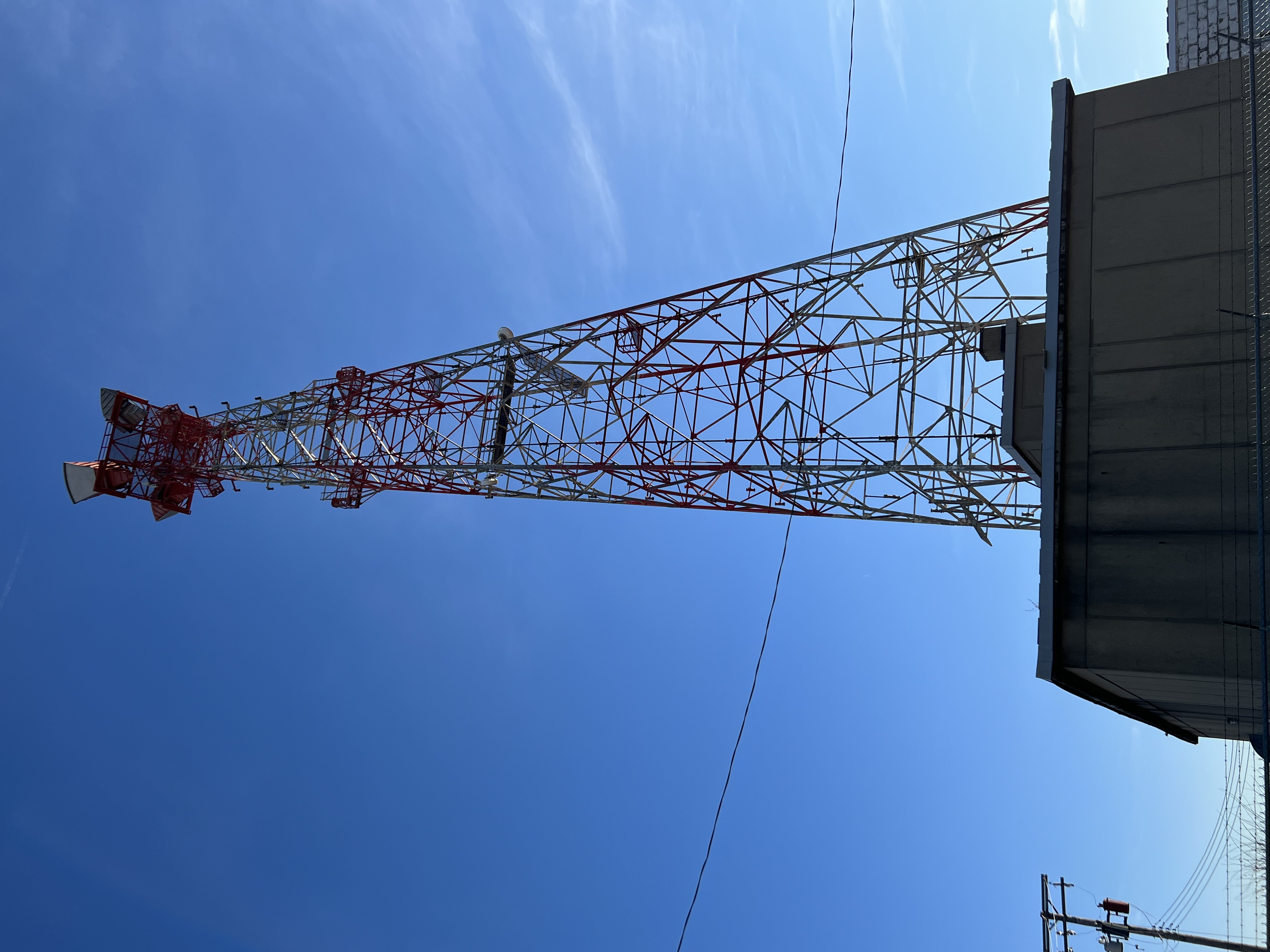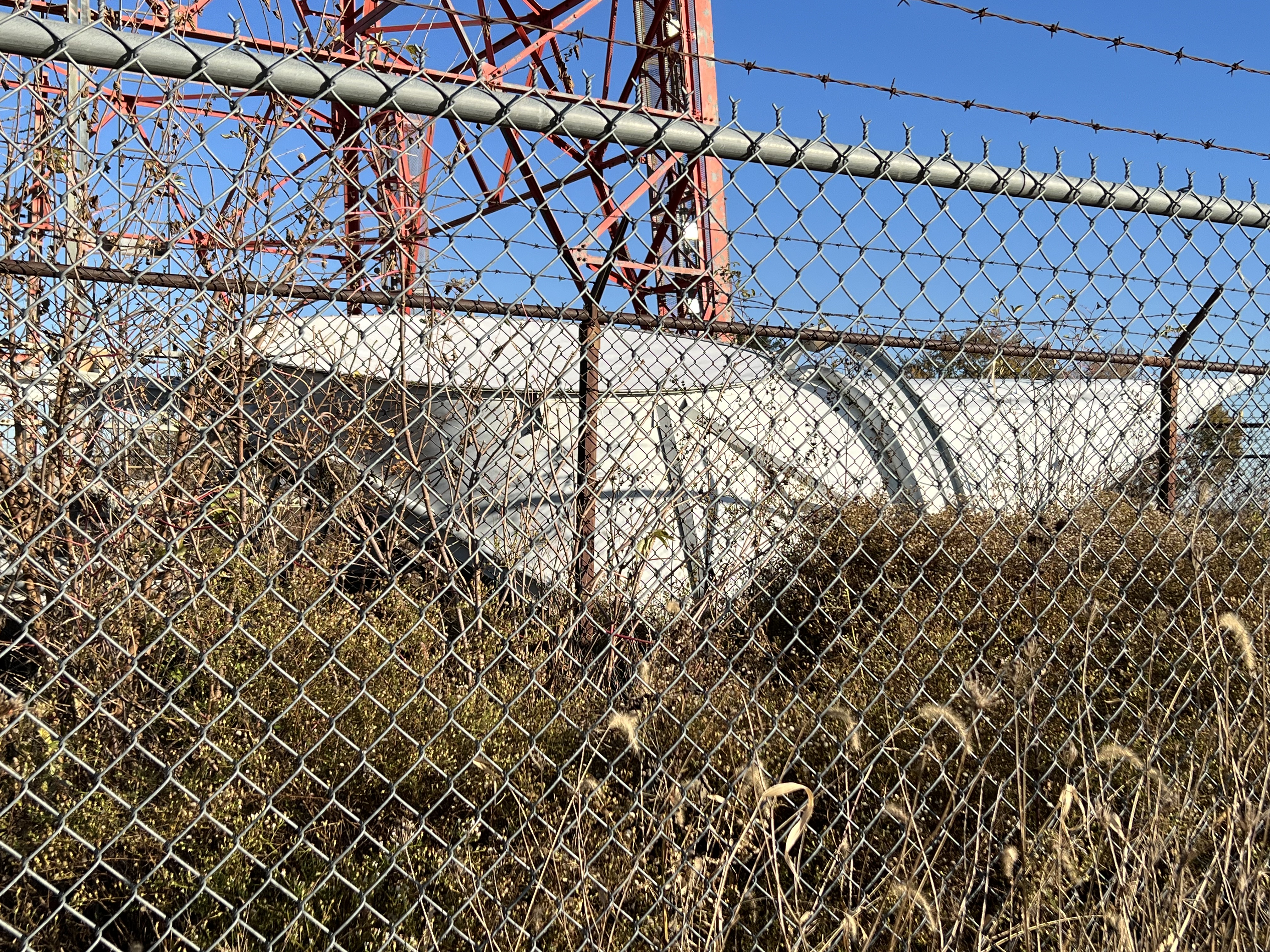 This site is now owned by tower sites and has a couple point to point dishes about mid way up. The two "ice cream cone" shaped antennas have been removed and placed on the ground nearby while the four main horns remain up top.