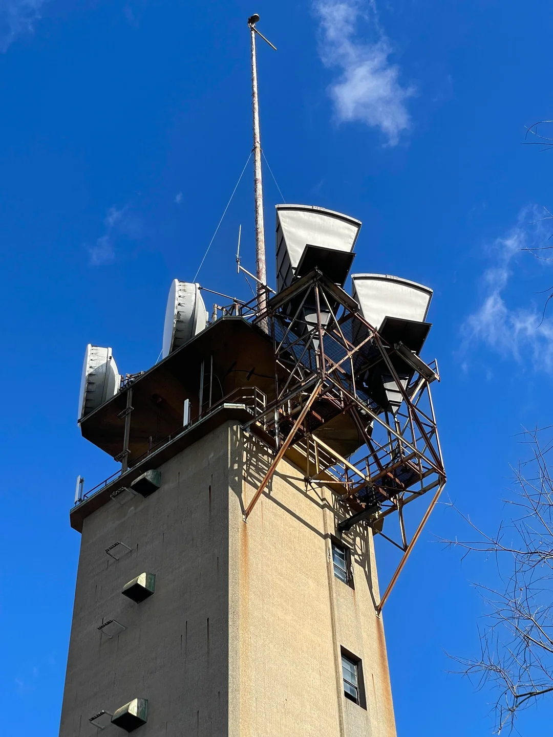 This site also hosted Bell Atlantic's IMTS telephone service, this was the purpose of the large monopole mounted on top and the small adjacent building next to the tower.